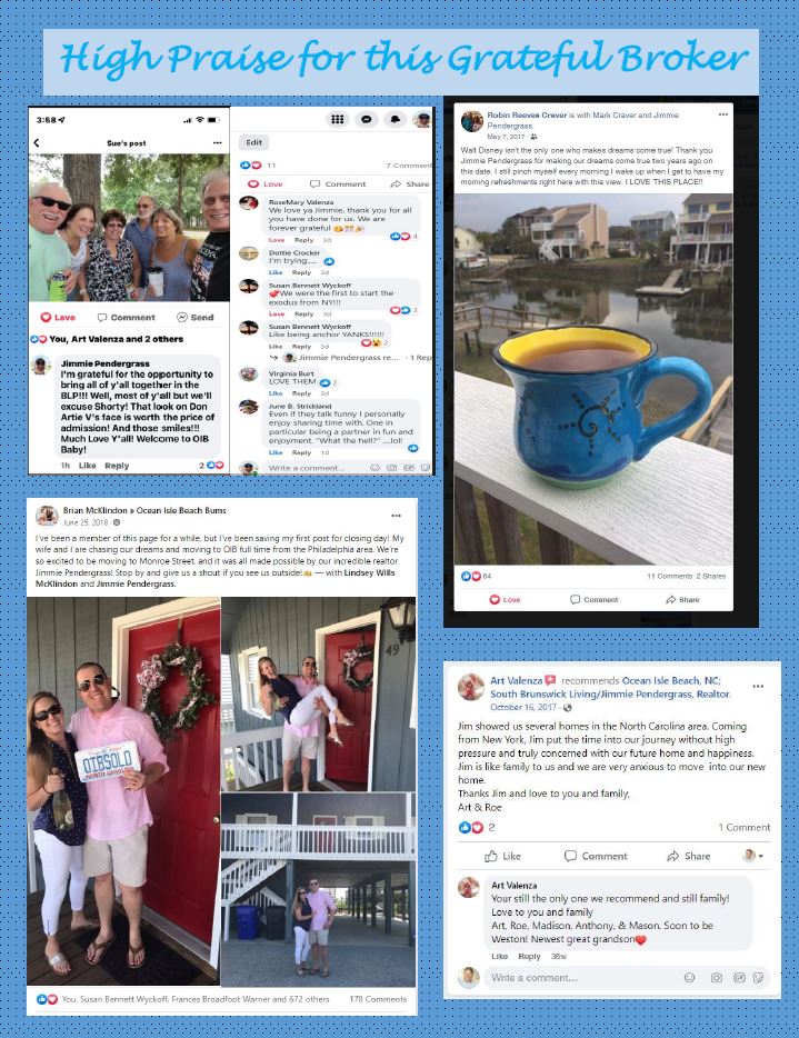 “Let’s be real, not all encounters with real estate agents are pleasurable, some agents often have their own agenda and don’t listen to the buyers wants and needs…. Our dealings with Jimmie, however, were pleasurable and fruitful. I’m not certain who was more surprised when we purchased our soon to be retirement home, Jimmie or us. First and foremost, Jimmie listened to what we were looking for and because he may have sensed some uncertainty he first listened, shared with us the pros/cons of all the areas we expressed interest in and let us decide what was right for us. Being that we are out of town his knowledge of the areas was key in helping us decide which area to settle on. When we would get into discussion about the different houses Jimmie would always remind us of our wish list, close to the ocean and/or on a golf course, open floor plan and no stairs. Jimmie listened, accommodated our schedule, showed us homes we wanted to look at versus homes he wanted to sell and let us decide what was best for us. He was honest, a great listener, very accommodating and a trooper working through the loan and closing process, I never knew working through all the details from some 700 miles away could be so easy.